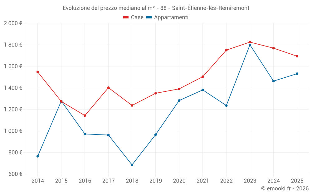 Il prezzo mediano sulle 17 transazioni di case degli ultimi 12 mesi nel comune di Saint-Étienne-lès-Remiremont era di 1 694 € al metro quadrato per un valore patrimoniale mediano di 178 000 €. In questo periodo il 60% delle transazioni era tra 1 324 e 1 814 € al metro quadrato (dal 2° all'8° decile).