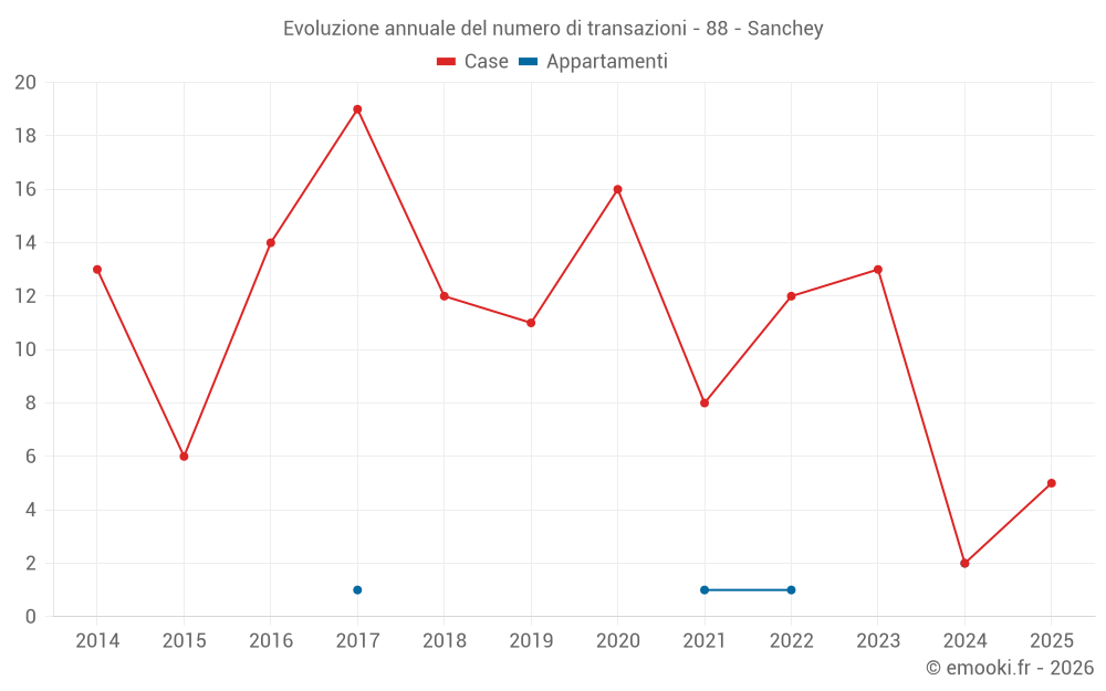 Il prezzo mediano sulle 17 transazioni di case degli ultimi 24 mesi nel comune di Sanchey era di 2 150 € al metro quadrato per un valore patrimoniale mediano di 215 000 €. In questo periodo il 60% delle transazioni era tra 1 623 e 2 412 € al metro quadrato (dal 2° all'8° decile).
