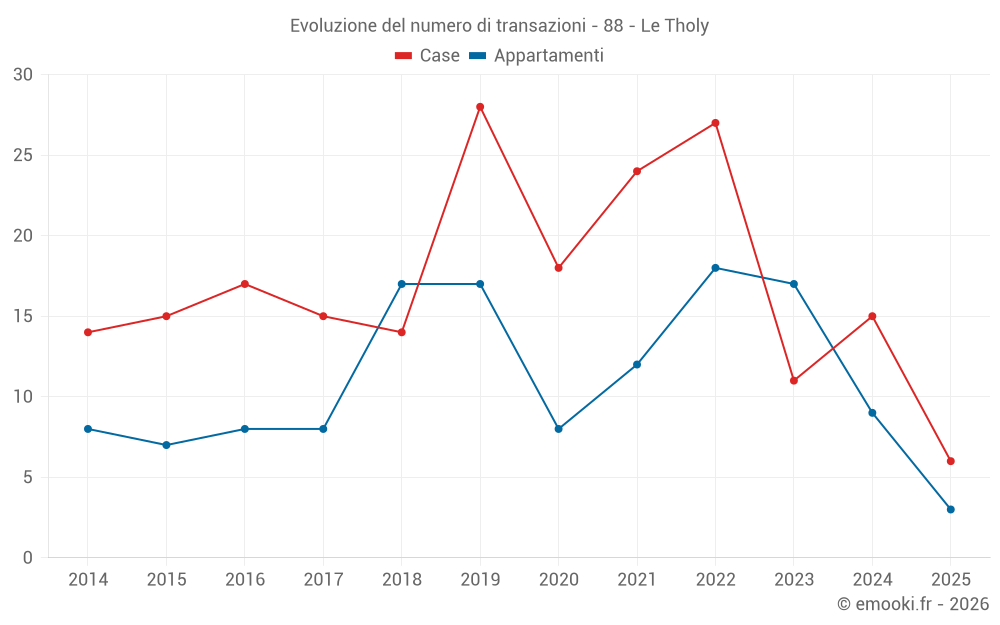 Il prezzo mediano sulle 20 transazioni di appartamenti degli ultimi 24 mesi nel comune di Le Tholy era di 2 460 € al metro quadrato per un valore patrimoniale mediano di 76 750 €. In questo periodo il 60% delle transazioni era tra 1 585 e 2 876 € al metro quadrato (dal 2° all'8° decile).