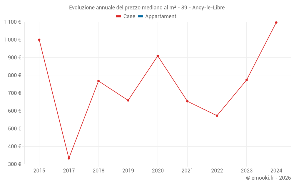 Evoluzione del prezzo mediano al m² degli appartamenti