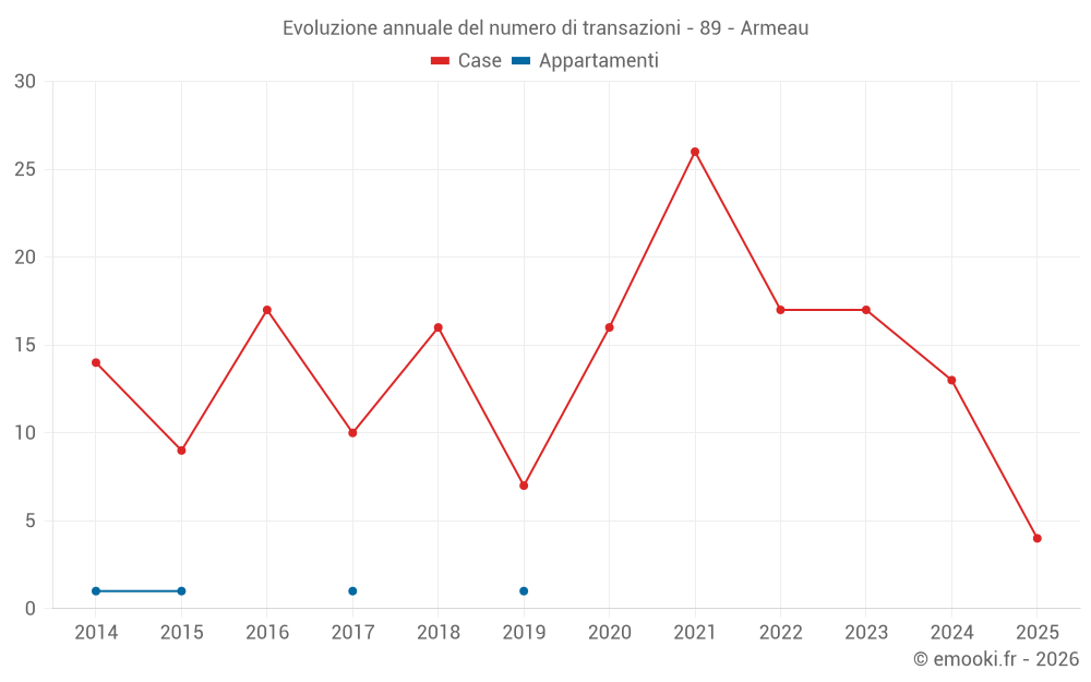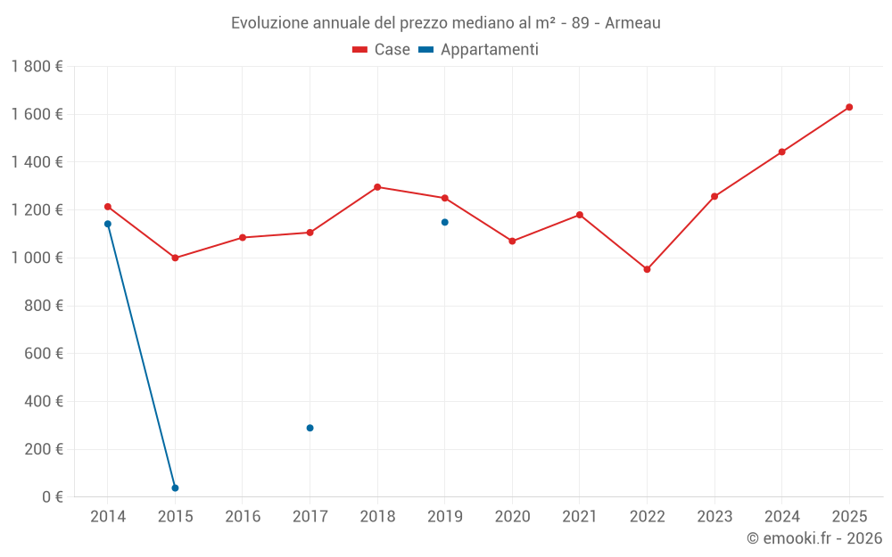 Il prezzo mediano sulle 25 transazioni di case degli ultimi 24 mesi nel comune di Armeau era di 1 418 € al metro quadrato per un valore patrimoniale mediano di 127 000 €. In questo periodo il 60% delle transazioni era tra 1 028 e 1 958 € al metro quadrato (dal 2° all'8° decile).