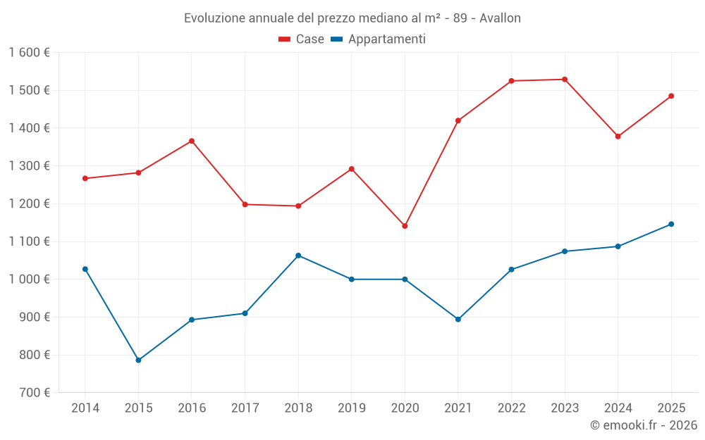 Il prezzo mediano sulle 33 transazioni di case degli ultimi 12 mesi nel comune di Avallon era di 1 364 € al metro quadrato per un valore patrimoniale mediano di 104 000 €. In questo periodo il 60% delle transazioni era tra 974 e 1 851 € al metro quadrato (dal 2° all'8° decile).