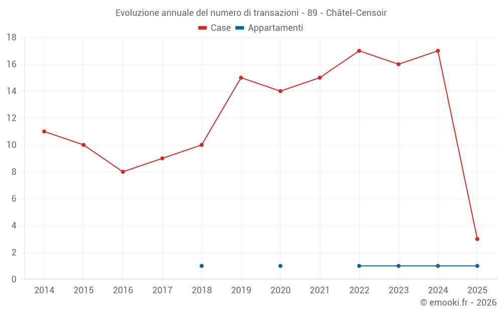 Il prezzo mediano sulle 30 transazioni di case degli ultimi 24 mesi nel comune di Châtel-Censoir era di 832 € al metro quadrato per un valore patrimoniale mediano di 63 500 €. In questo periodo il 60% delle transazioni era tra 489 e 1 184 € al metro quadrato (dal 2° all'8° decile).