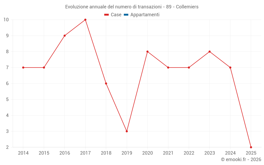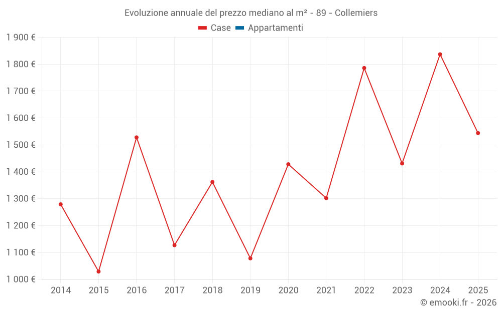 Il prezzo mediano sulle 14 transazioni di case degli ultimi 24 mesi nel comune di Collemiers era di 1 564 € al metro quadrato per un valore patrimoniale mediano di 158 000 €. In questo periodo il 60% delle transazioni era tra 1 322 e 1 857 € al metro quadrato (dal 2° all'8° decile).