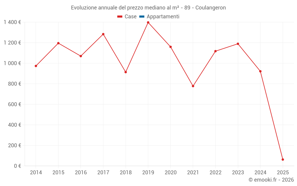 Evoluzione del prezzo mediano al m² degli appartamenti