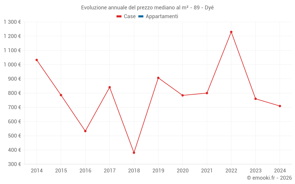 Attenzione, ultimo anno incompleto. Le proiezioni sono effettuate in base alle proporzioni tra semestri dell'anno precedente a livello dipartimentale/nazionale e per tipo di proprietà.