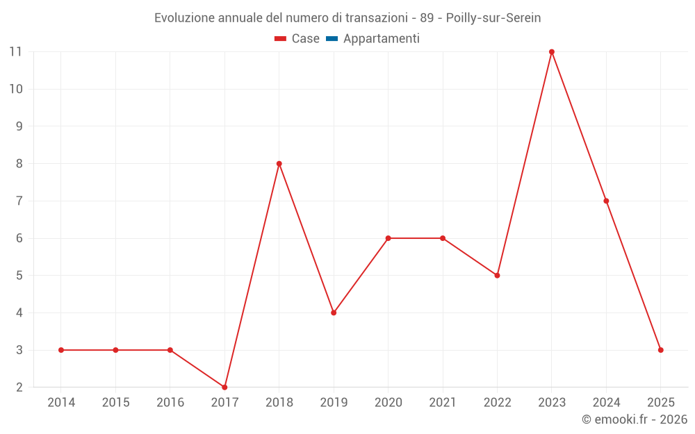Il prezzo mediano sulle 14 transazioni di case degli ultimi 24 mesi nel comune di Poilly-sur-Serein era di 804 € al metro quadrato per un valore patrimoniale mediano di 42 500 €. In questo periodo il 60% delle transazioni era tra 340 e 994 € al metro quadrato (dal 2° all'8° decile).