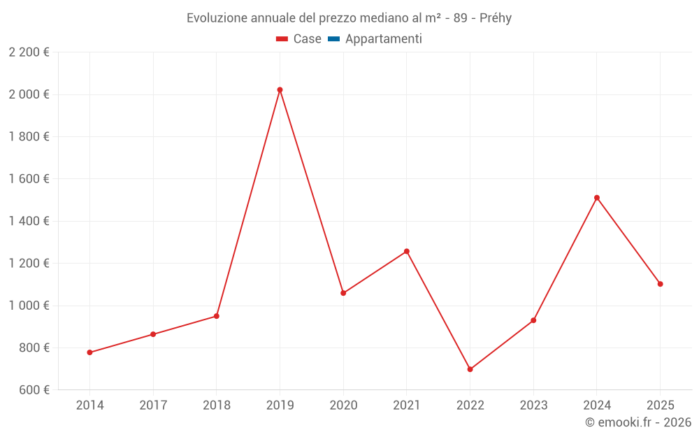 Evoluzione del prezzo mediano al m² degli appartamenti