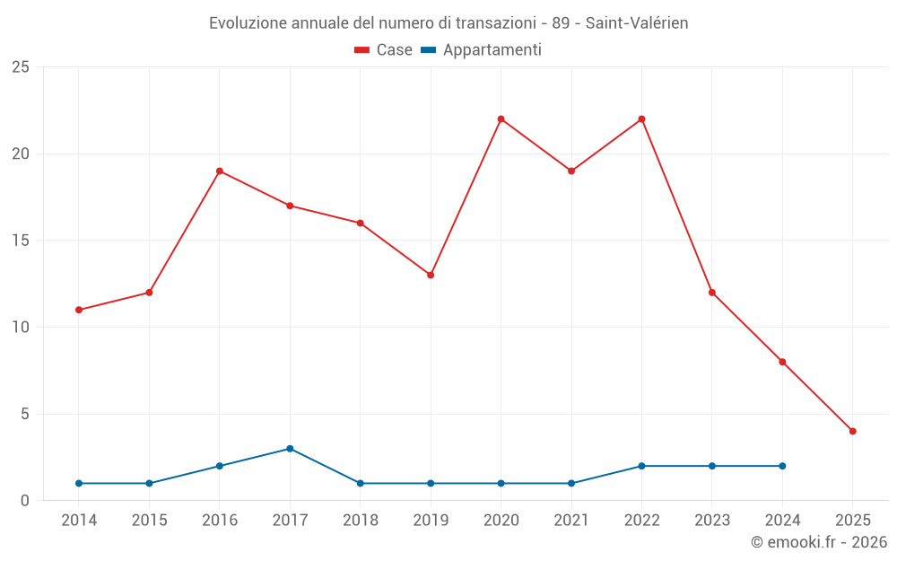 Il prezzo mediano sulle 20 transazioni di case degli ultimi 24 mesi nel comune di Saint-Valérien era di 1 539 € al metro quadrato per un valore patrimoniale mediano di 123 500 €. In questo periodo il 60% delle transazioni era tra 1 133 e 1 805 € al metro quadrato (dal 2° all'8° decile).