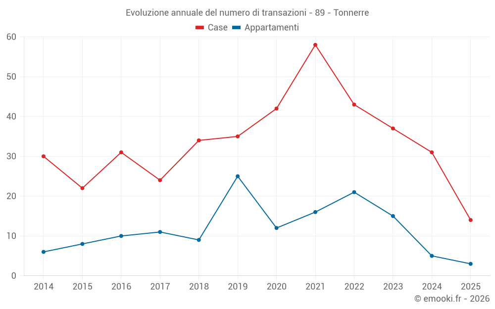 Il prezzo mediano sulle 31 transazioni di case degli ultimi 12 mesi nel comune di Tonnerre era di 887 € al metro quadrato per un valore patrimoniale mediano di 75 000 €. In questo periodo il 60% delle transazioni era tra 493 e 1 361 € al metro quadrato (dal 2° all'8° decile).