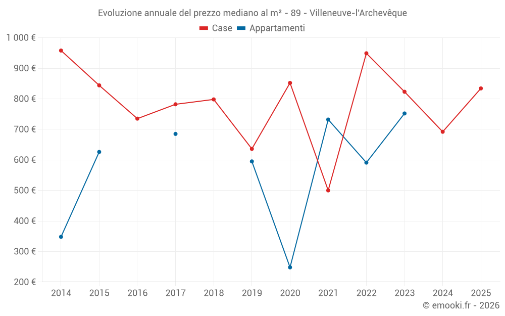 Qual è il prezzo al m2 delle case in Villeneuve-l'Archevêque?