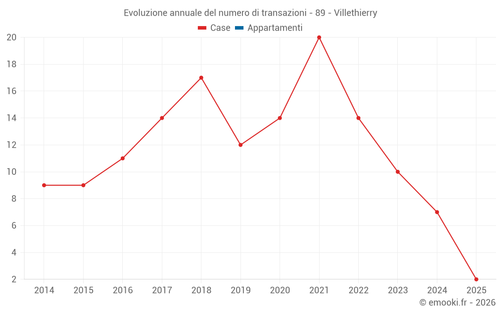 Il prezzo mediano sulle 15 transazioni di case degli ultimi 24 mesi nel comune di Villethierry era di 1 679 € al metro quadrato per un valore patrimoniale mediano di 160 000 €. In questo periodo il 60% delle transazioni era tra 1 243 e 1 978 € al metro quadrato (dal 2° all'8° decile).