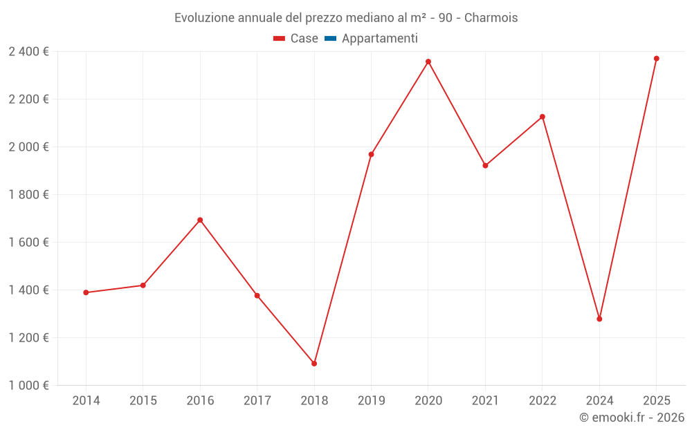 Evoluzione del prezzo mediano al m² degli appartamenti