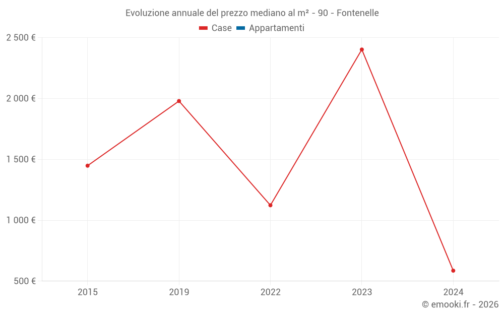 Evoluzione del prezzo mediano al m² degli appartamenti