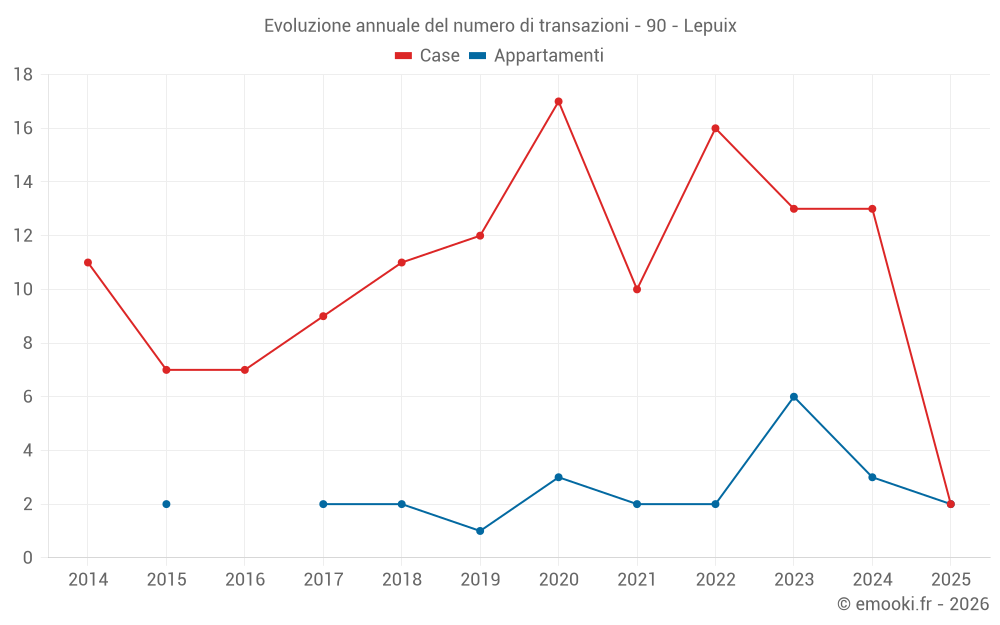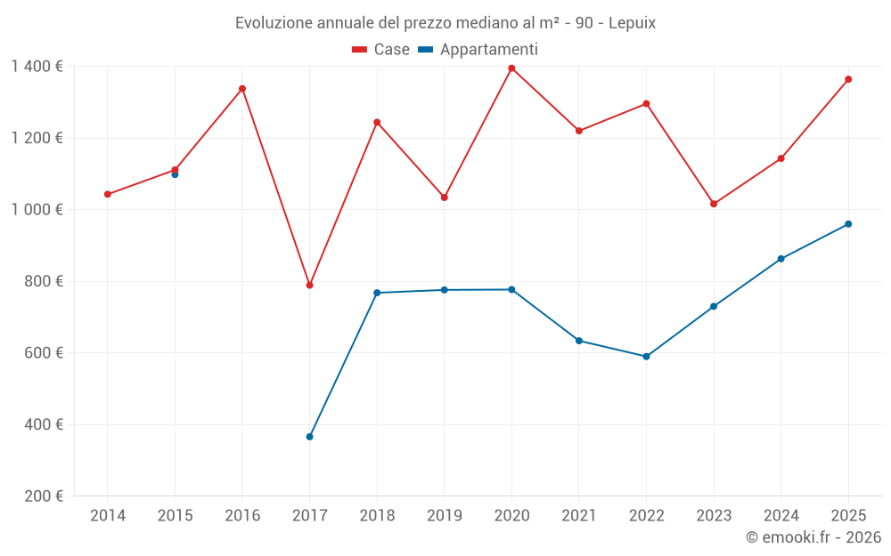 Il prezzo mediano sulle 19 transazioni di case degli ultimi 24 mesi nel comune di Lepuix era di 1 215 € al metro quadrato per un valore patrimoniale mediano di 88 200 €. In questo periodo il 60% delle transazioni era tra 722 e 1 504 € al metro quadrato (dal 2° all'8° decile).
