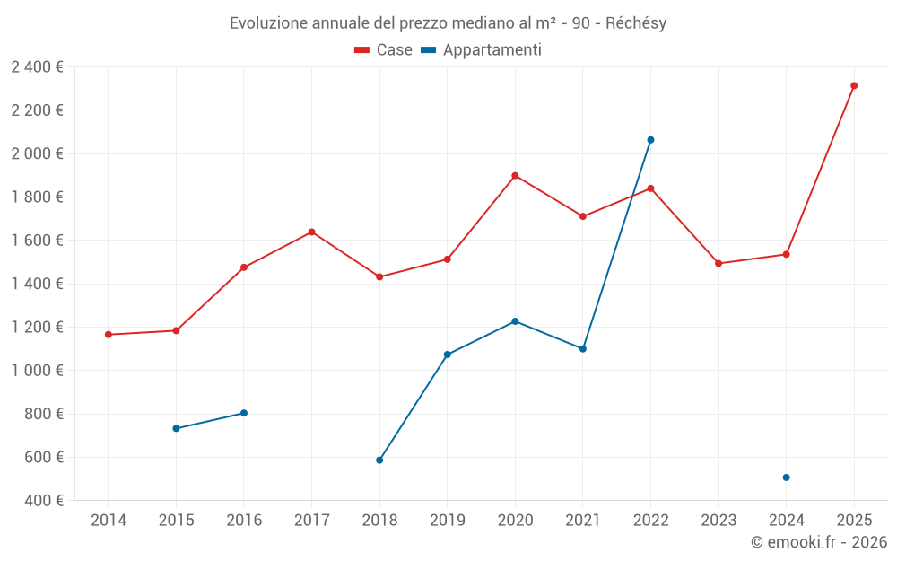 Evoluzione del prezzo mediano al m² degli appartamenti