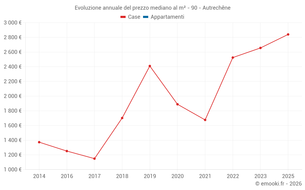 Evoluzione del prezzo mediano al m² degli appartamenti