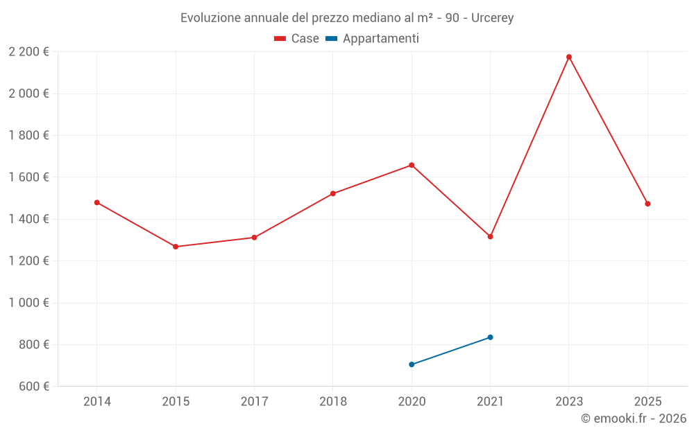 Evoluzione del prezzo mediano al m² degli appartamenti