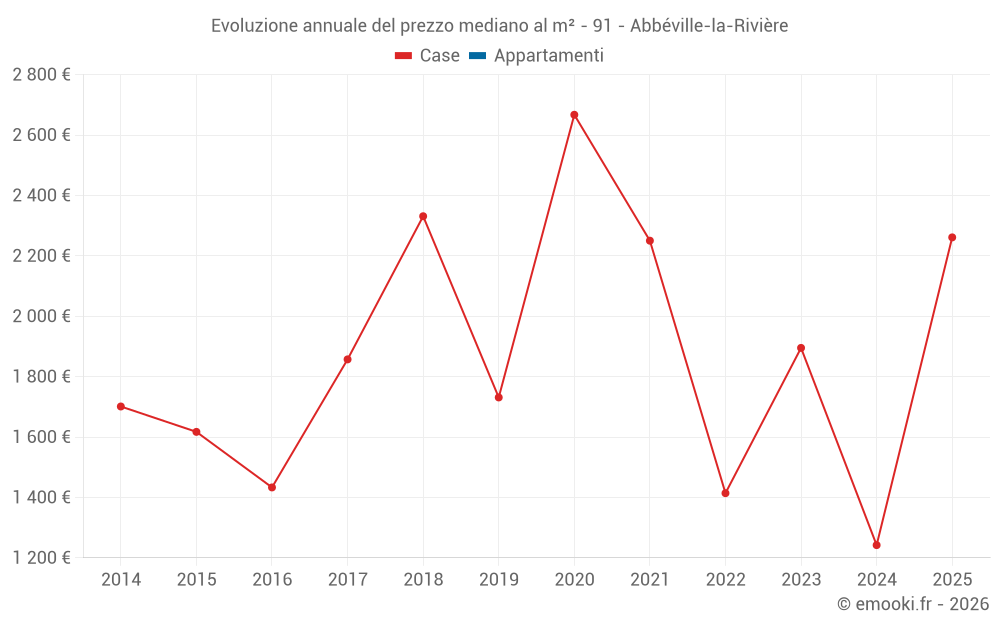 Evoluzione del prezzo mediano al m² degli appartamenti