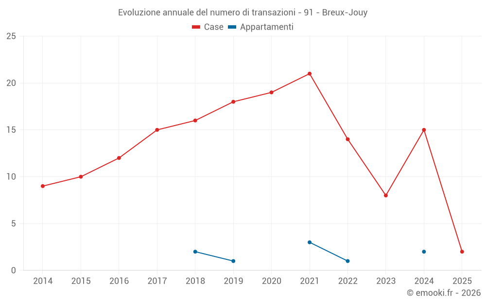 Il prezzo mediano sulle 20 transazioni di case degli ultimi 24 mesi nel comune di Breux-Jouy era di 2 952 € al metro quadrato per un valore patrimoniale mediano di 320 000 €. In questo periodo il 60% delle transazioni era tra 2 451 e 3 258 € al metro quadrato (dal 2° all'8° decile).
