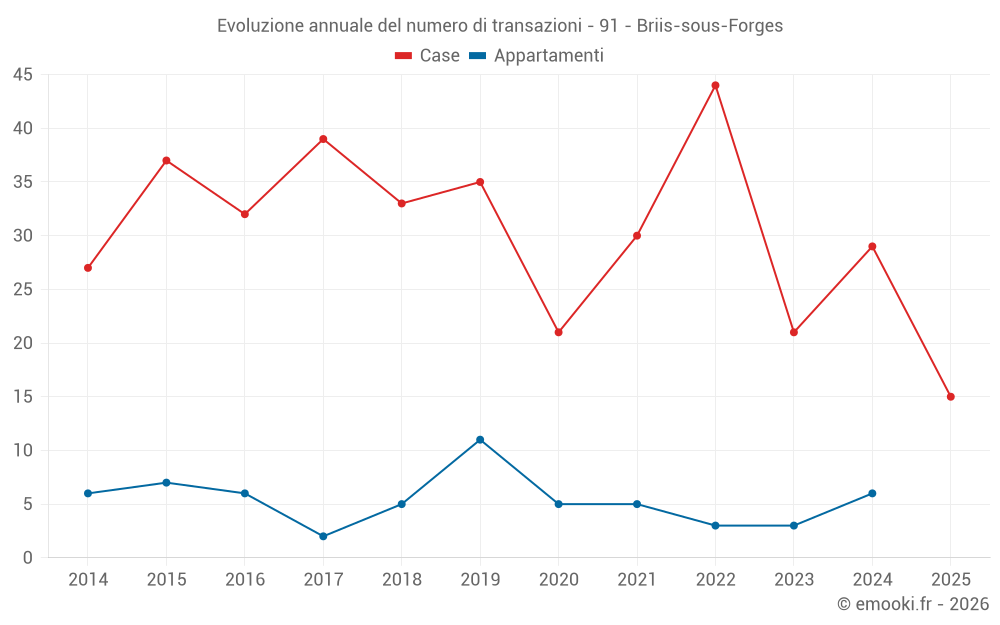 Il prezzo mediano sulle 33 transazioni di case degli ultimi 12 mesi nel comune di Briis-sous-Forges era di 3 269 € al metro quadrato per un valore patrimoniale mediano di 340 000 €. In questo periodo il 60% delle transazioni era tra 2 189 e 3 873 € al metro quadrato (dal 2° all'8° decile).