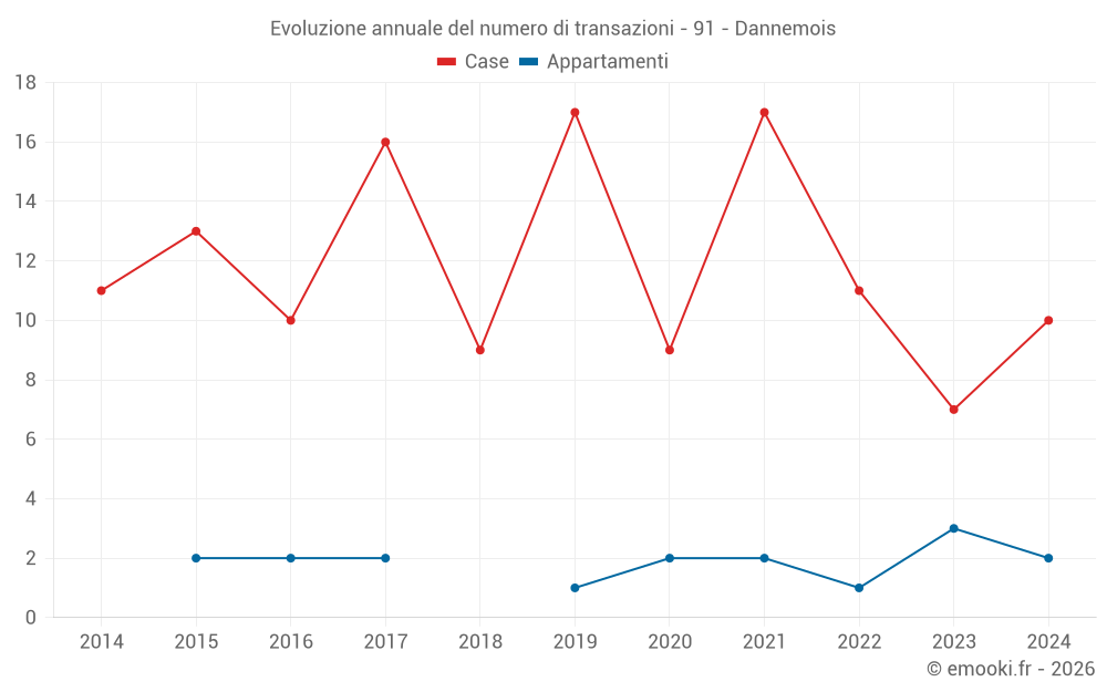 Il prezzo mediano sulle 14 transazioni di case degli ultimi 24 mesi nel comune di Dannemois era di 3 005 € al metro quadrato per un valore patrimoniale mediano di 332 500 €. In questo periodo il 60% delle transazioni era tra 2 074 e 4 277 € al metro quadrato (dal 2° all'8° decile).