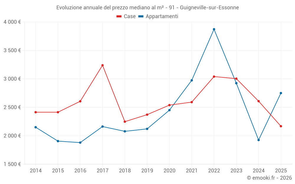 Qual è il prezzo al m2 delle case in Guigneville-sur-Essonne?