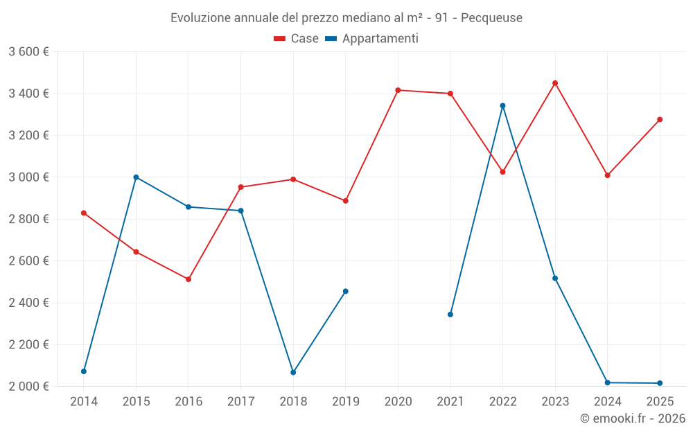 Il prezzo al m² delle case è diminuito del 5% da 2 anni, ma è aumentato del 24% in 10 anni.