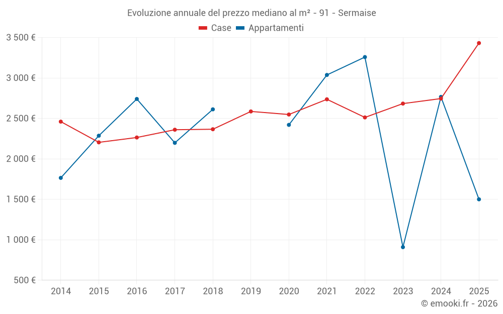 Il prezzo mediano sulle 29 transazioni di case degli ultimi 24 mesi nel comune di Sermaise era di 2 731 € al metro quadrato per un valore patrimoniale mediano di 290 000 €. In questo periodo il 60% delle transazioni era tra 2 341 e 3 209 € al metro quadrato (dal 2° all'8° decile).