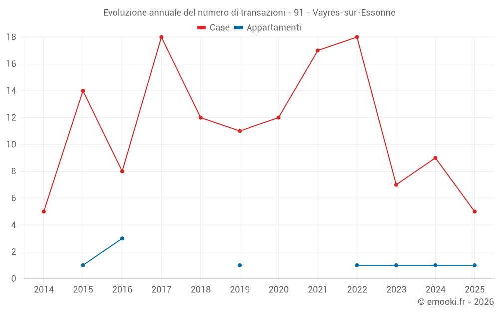 Il prezzo mediano sulle 18 transazioni di case degli ultimi 24 mesi nel comune di Vayres-sur-Essonne era di 3 134 € al metro quadrato per un valore patrimoniale mediano di 265 000 €. In questo periodo il 60% delle transazioni era tra 2 009 e 3 941 € al metro quadrato (dal 2° all'8° decile).
