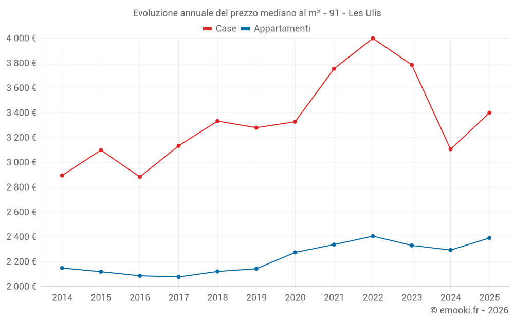 Il prezzo mediano sulle 18 transazioni di case degli ultimi 12 mesi nel comune di Les Ulis era di 3 242 € al metro quadrato per un valore patrimoniale mediano di 330 175 €. In questo periodo il 60% delle transazioni era tra 2 858 e 3 690 € al metro quadrato (dal 2° all'8° decile).
