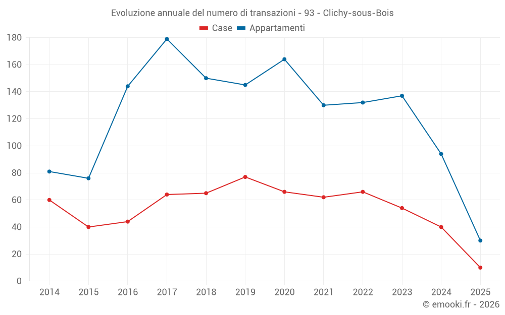 Il prezzo mediano sulle 32 transazioni di case degli ultimi 12 mesi nel comune di Clichy-sous-Bois era di 2 918 € al metro quadrato per un valore patrimoniale mediano di 252 250 €. In questo periodo il 60% delle transazioni era tra 2 311 e 3 626 € al metro quadrato (dal 2° all'8° decile).