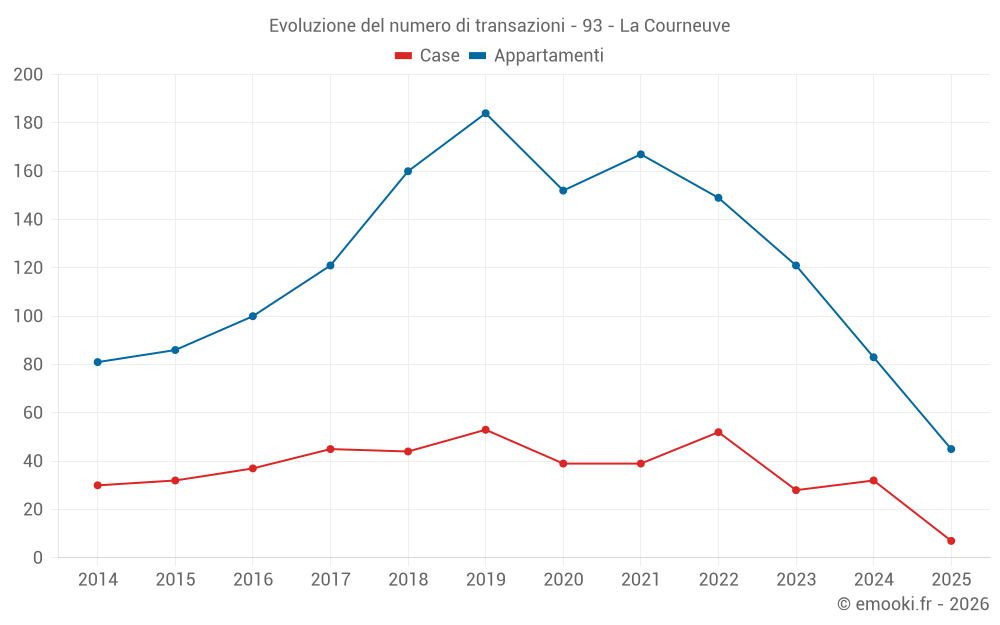 Attenzione, ultimo anno incompleto. Le proiezioni sono effettuate in base alle proporzioni tra semestri dell'anno precedente a livello dipartimentale/nazionale e per tipo di proprietà.
