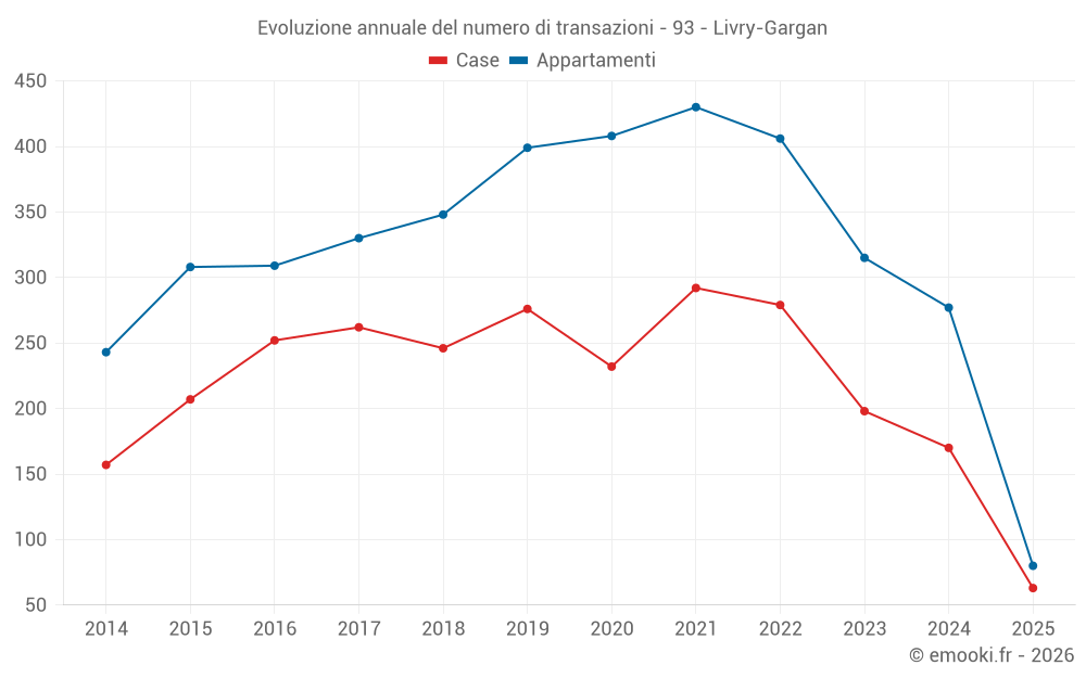 Il prezzo mediano sulle 24 transazioni di case degli ultimi 3 mesi nel comune di Livry-Gargan era di 4 074 € al metro quadrato per un valore patrimoniale mediano di 302 000 €. In questo periodo il 60% delle transazioni era tra 3 158 e 4 645 € al metro quadrato (dal 2° all'8° decile).