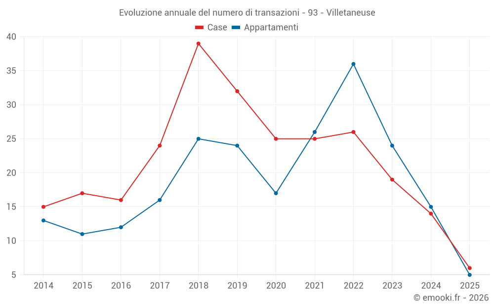 Il prezzo mediano sulle 32 transazioni di case degli ultimi 24 mesi nel comune di Villetaneuse era di 3 288 € al metro quadrato per un valore patrimoniale mediano di 263 500 €. In questo periodo il 60% delle transazioni era tra 2 629 e 4 170 € al metro quadrato (dal 2° all'8° decile).