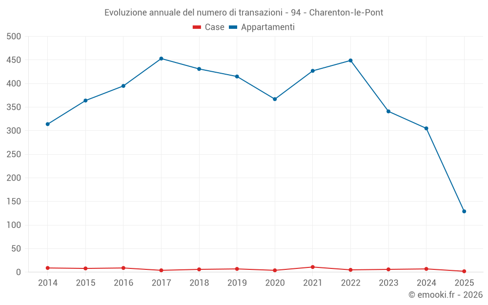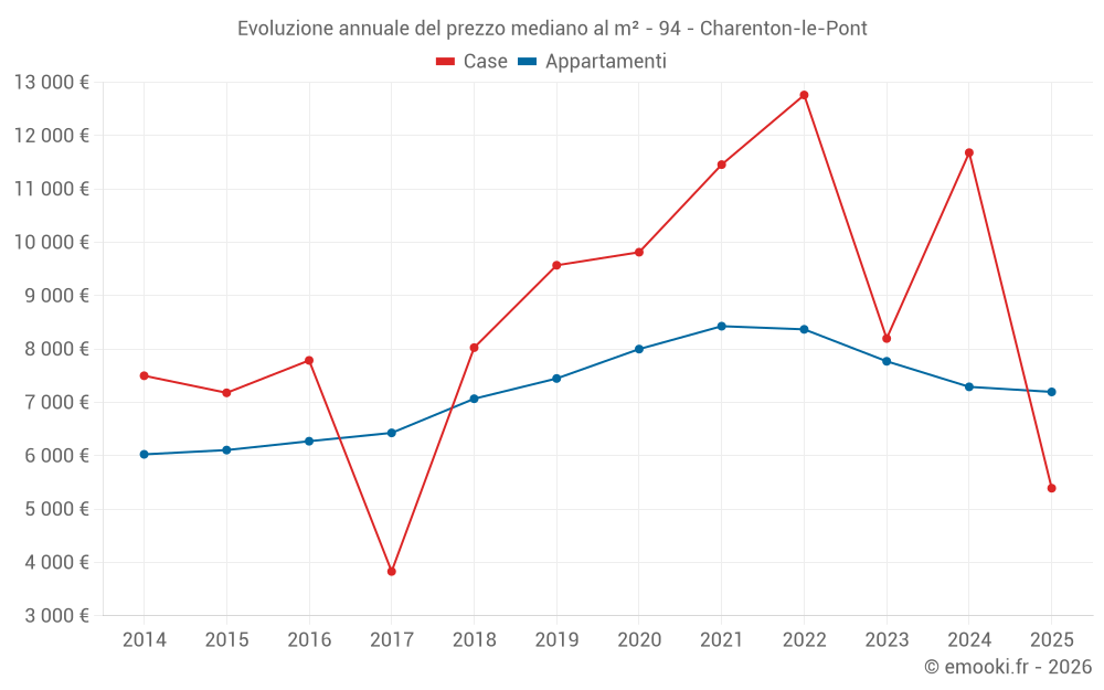 Il prezzo mediano sulle 51 transazioni di appartamenti degli ultimi 3 mesi nel comune di Charenton-le-Pont era di 7 160 € al metro quadrato per un valore patrimoniale mediano di 365 000 €. In questo periodo il 60% delle transazioni era tra 5 732 e 8 364 € al metro quadrato (dal 2° all'8° decile).