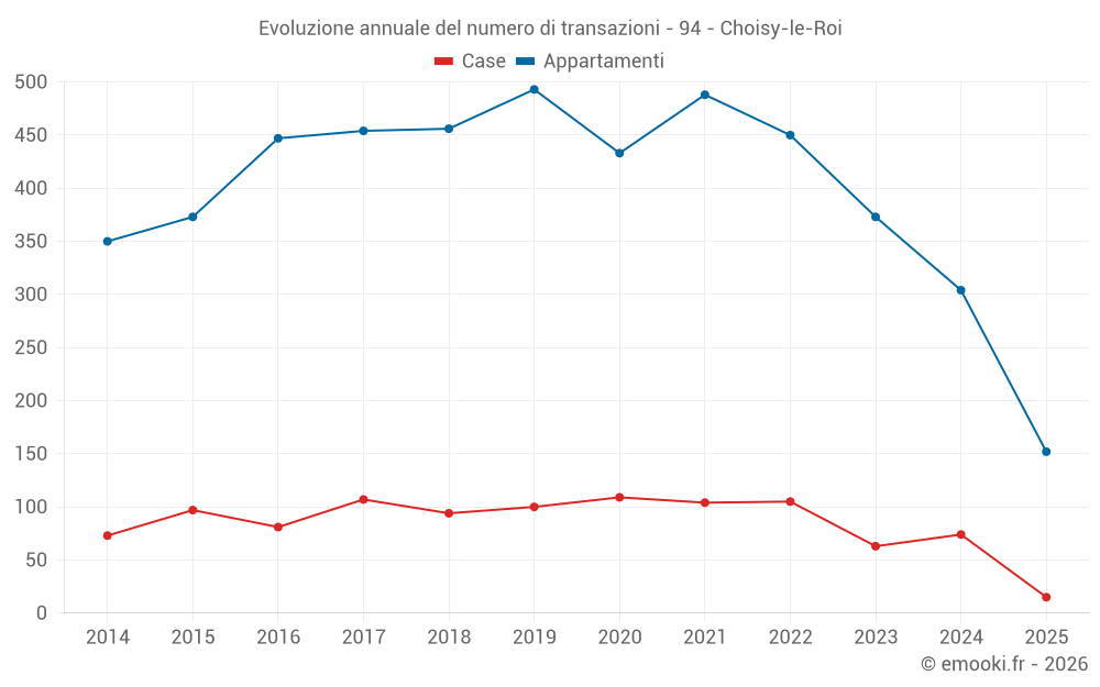 Il prezzo mediano sulle 52 transazioni di case degli ultimi 12 mesi nel comune di Choisy-le-Roi era di 4 554 € al metro quadrato per un valore patrimoniale mediano di 319 675 €. In questo periodo il 60% delle transazioni era tra 3 721 e 5 280 € al metro quadrato (dal 2° all'8° decile).