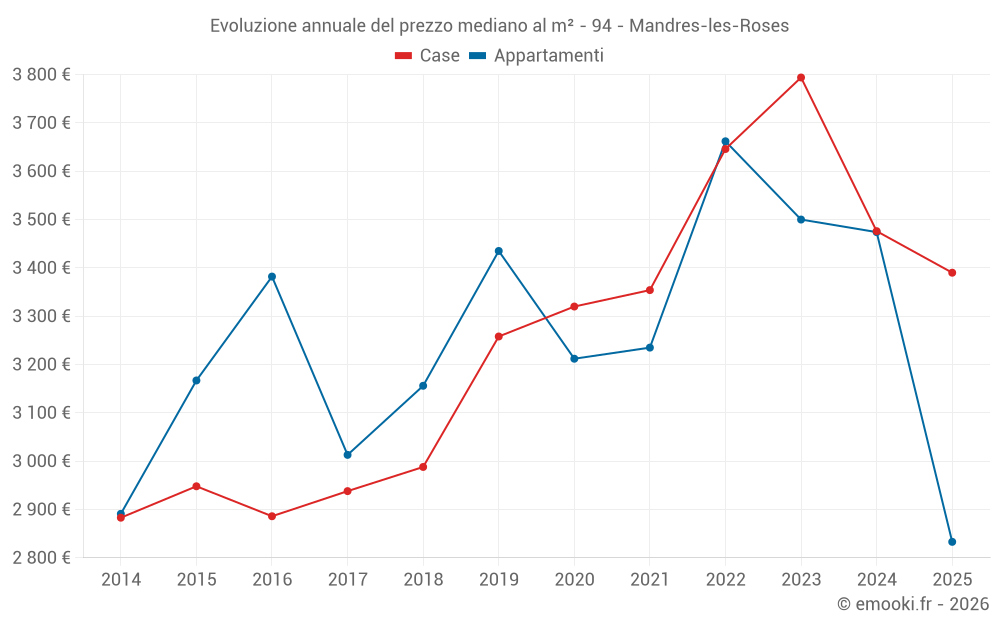 Qual è il prezzo al m2 delle case in Mandres-les-Roses?