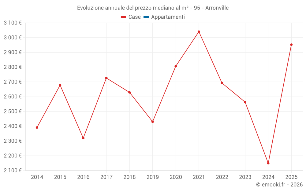 Il prezzo al m² delle case è aumentato del 37% da 1 anno, ma è diminuito del 2.9% in 4 anni.