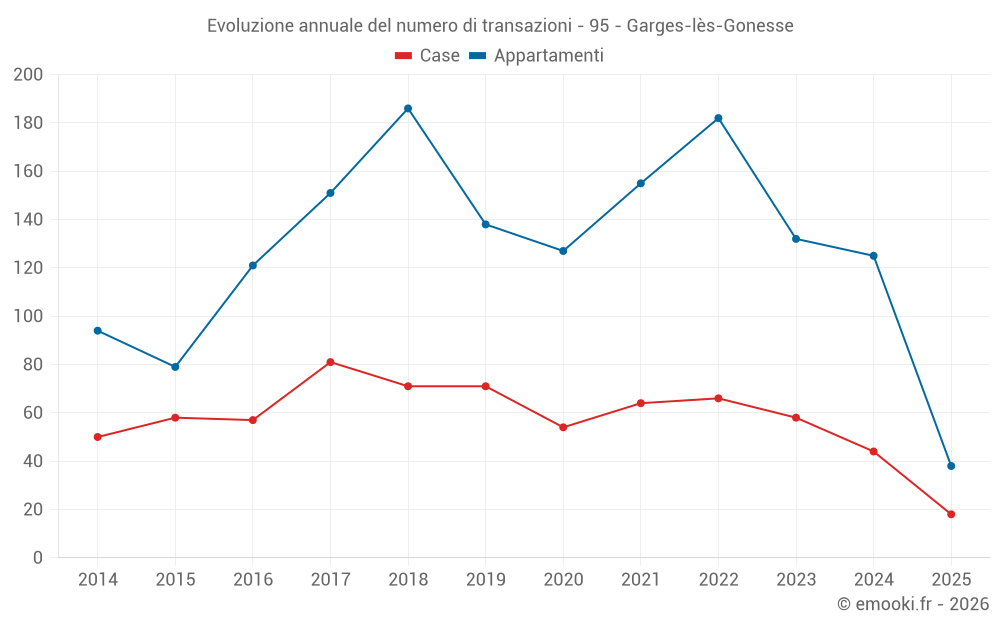 Il prezzo mediano sulle 38 transazioni di appartamenti degli ultimi 6 mesi nel comune di Garges-lès-Gonesse era di 2 204 € al metro quadrato per un valore patrimoniale mediano di 139 000 €. In questo periodo il 60% delle transazioni era tra 1 858 e 2 590 € al metro quadrato (dal 2° all'8° decile).