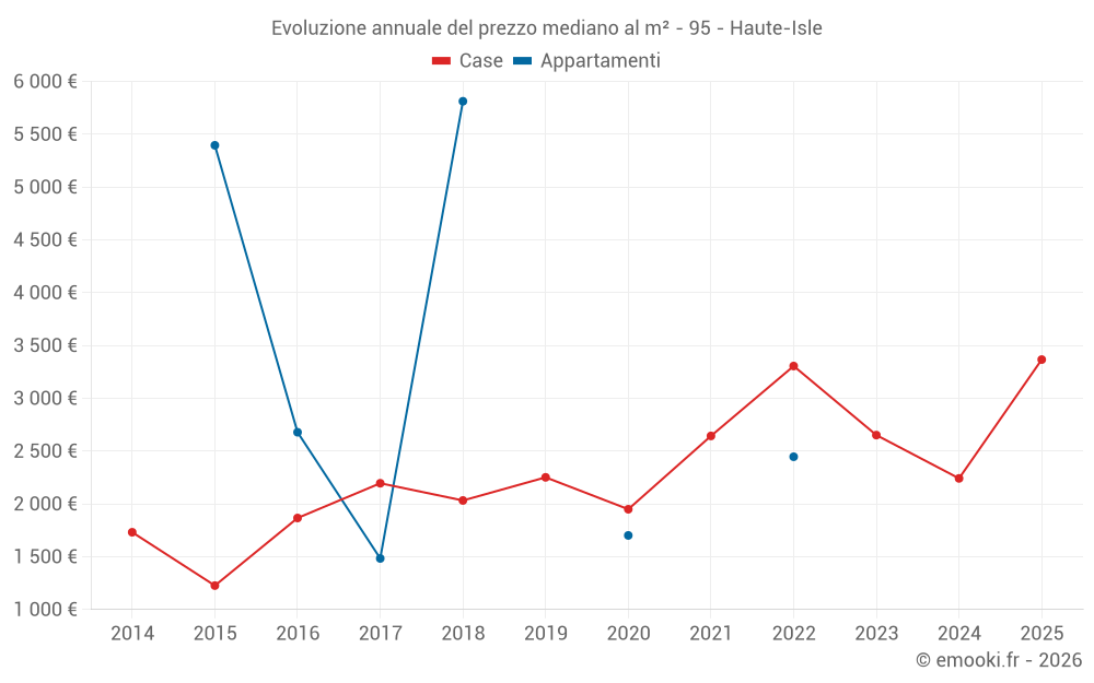 Evoluzione del prezzo mediano al m² degli appartamenti