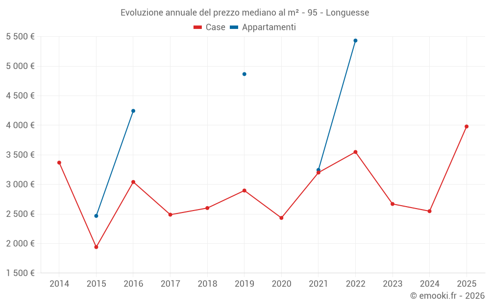 Il prezzo mediano sulle 14 transazioni di case degli ultimi 24 mesi nel comune di Longuesse era di 2 812 € al metro quadrato per un valore patrimoniale mediano di 261 250 €. In questo periodo il 60% delle transazioni era tra 1 861 e 4 973 € al metro quadrato (dal 2° all'8° decile).