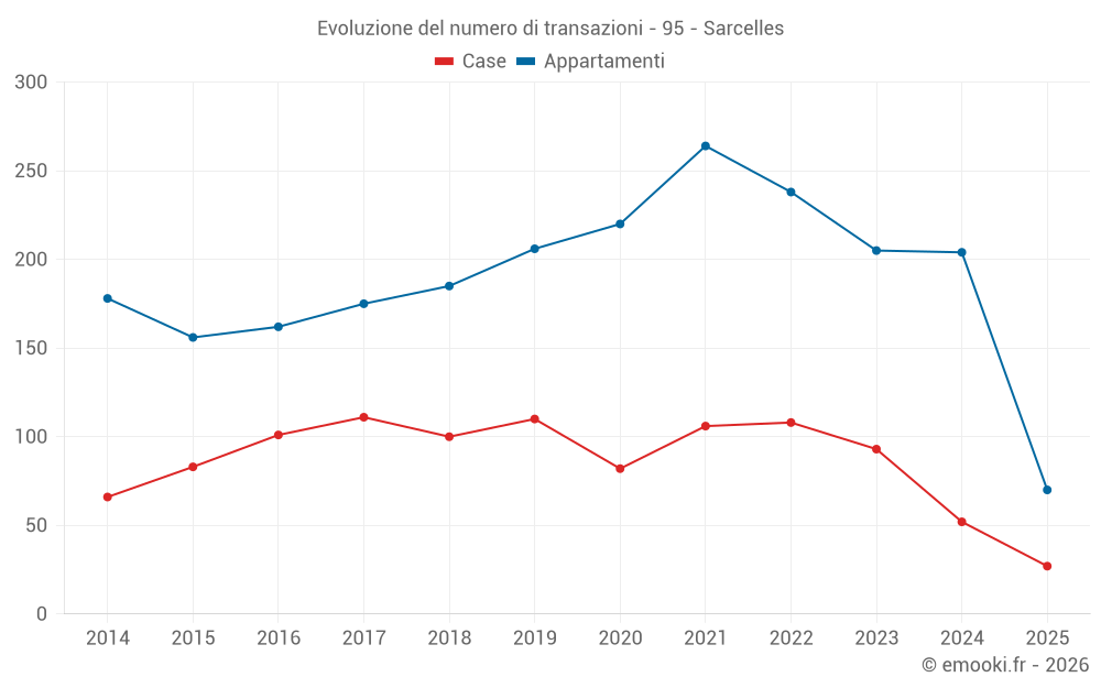 Il prezzo mediano sulle 27 transazioni di case degli ultimi 6 mesi nel comune di Sarcelles era di 3 170 € al metro quadrato per un valore patrimoniale mediano di 280 000 €. In questo periodo il 60% delle transazioni era tra 2 547 e 3 873 € al metro quadrato (dal 2° all'8° decile).