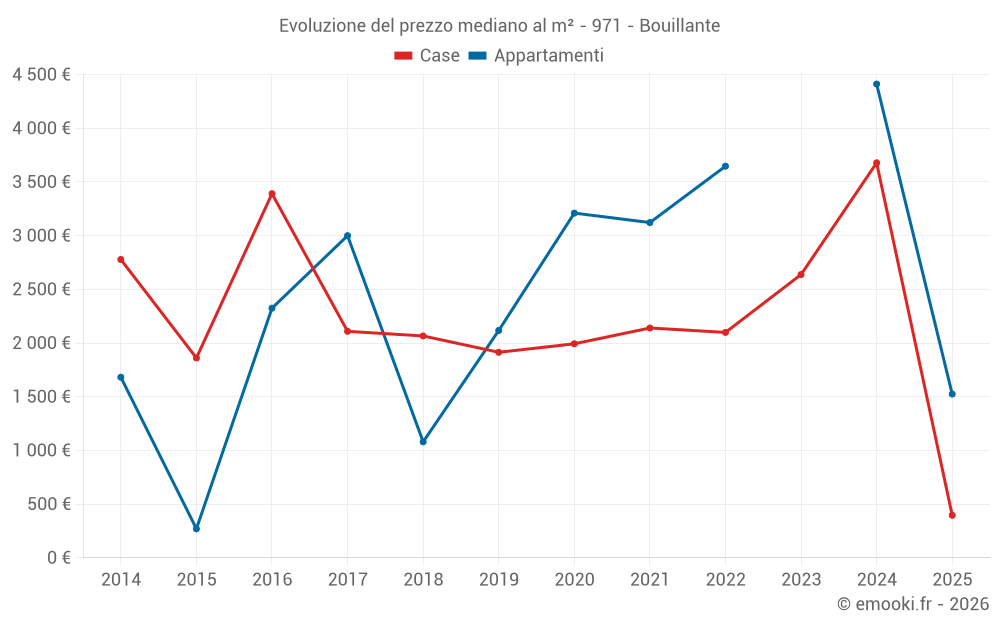 Attenzione, ultimo anno incompleto. Le proiezioni sono effettuate in base alle proporzioni tra semestri dell'anno precedente a livello dipartimentale/nazionale e per tipo di proprietà .